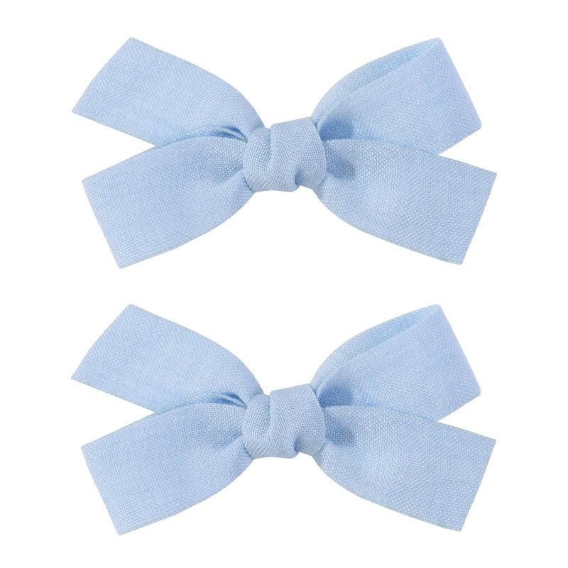Adorable 2pcs White Hair Bow Clips for Baby-Girls - Boutique Barrettes for Toddlers and Kids with Fully Lined Clips(Sky Blue)