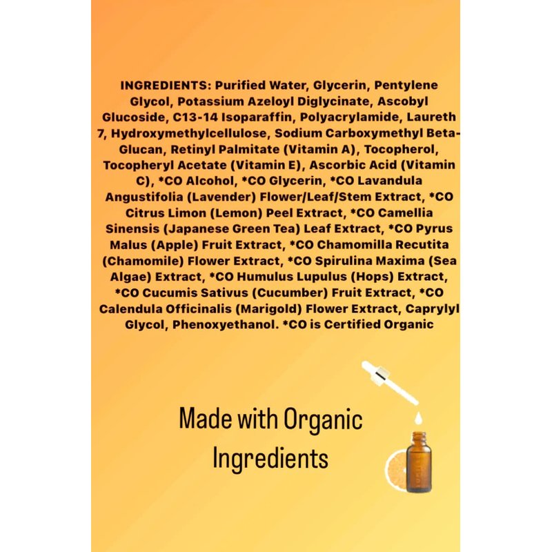 ADRIANNE K Organic Vitamin C Brightening Antioxidant Face Serum with Vitamin A & E. Vegan. Cruelty Free. Gluten Free. Non-sticky. Unisex