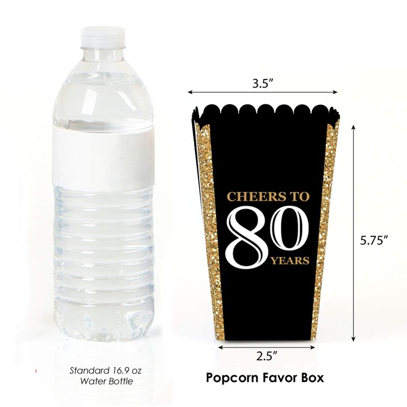 - PREMIUM PARTY FAVOR BOXES: Adult 80th Birthday party treat boxes are professionally printed on heavy-duty cardstock paper with a photo-like shine. They are hand-folded and individually inspected, then carefully packaged. Popcorn boxes will arrive flat. Easy assembly is required.