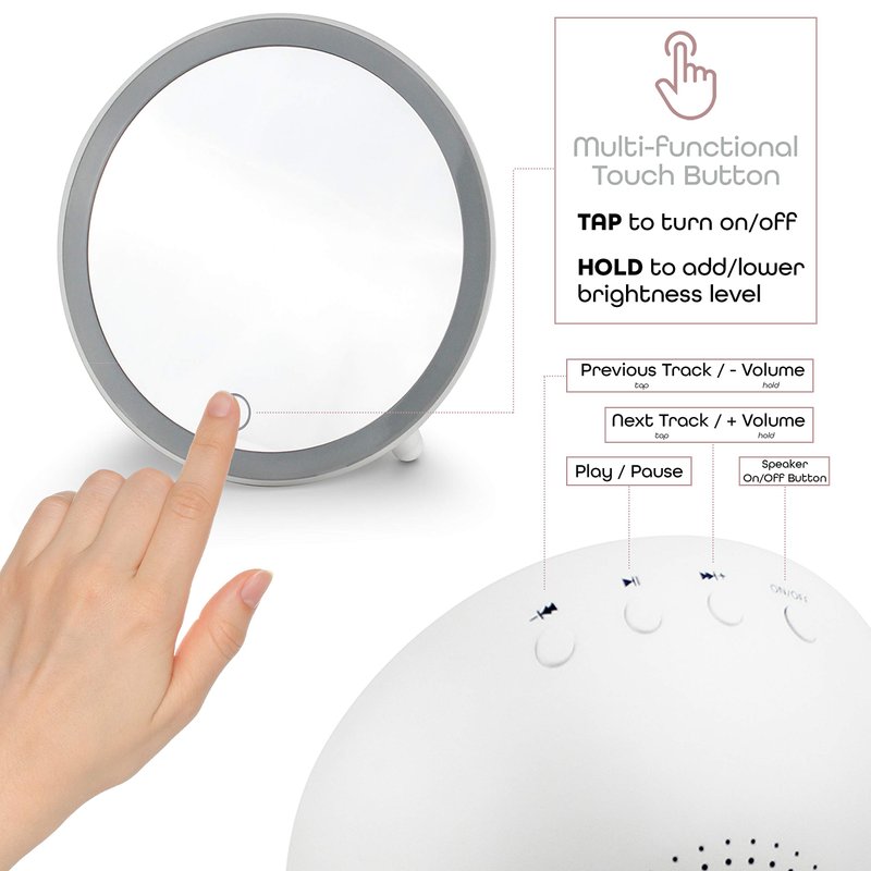 Aduro Vanity Mirror Makeup Mirror With Lights And Wireless Speaker, U-reflect Plus Audio Home Beauty LED Wireless Travel Smart Mirror, Compact Rechargeable