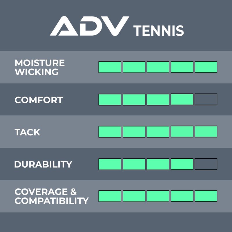 The MaxTac tennis overgrip is a great tenni overgrip that’s very comfortable, ultra-absorbent, & tear-resistant. No more slips, blisters, or sweaty hands when playing tennis since these tennis grips are made of 3 unique layers that ensure the best tennis overgrip experience. Its design is light on your tennis racket & wallet! They’re durable tenni overgrips that absorb sweat with much more ease, unlike the more expensive brands! No need to swap a replacement grip in the middle of sets. Buy tennis racket grip tapes that last longer from ADV Tennis! Made with the Ultimate Layering Technology Our tennis racquet grip tape is made with a layered design developed by professional players & coaches that play tennis. 1st Layer - The protective & tacky sheet resists ripping & keeps the racket glued to your hand. 2nd Layer - Our MaxTac resin coating keeps your tennis overgrip tape moisture-free & is ideal for sweaty hands. 3rd Layer - A compressed cotton spin cloth gives your tacky cloth for tennis extra absorbency & a cushioned feel to minimize sores. Together, these layers keep your tennis racquet grip super dry & in one piece as they tightly wrap around your tennis rackets handle. This tennis raquet overgrip set comes in a resealable weather-proof pouch. Each roll of this grip tape has ADV finishing tape at its tip to keep it stable. Premium & Practical Pro Overgrip Our tacky grip has a great amount of tackiness & toughness that lets any tennis player use it without losing grip or destroying the tape. It’s a great value, high-standard grip for tennis racquets and tennis equipment, saving you from the troubles of frequent replacement. Available in 2 High Visibility Colors Take your pick between our tennis racket grips in 2 colorways. White Volt No more worries about slippery & sweaty grip for tennis racquet - play freely & always perform your best! Buy a set of ADV Tennis overgrips today!