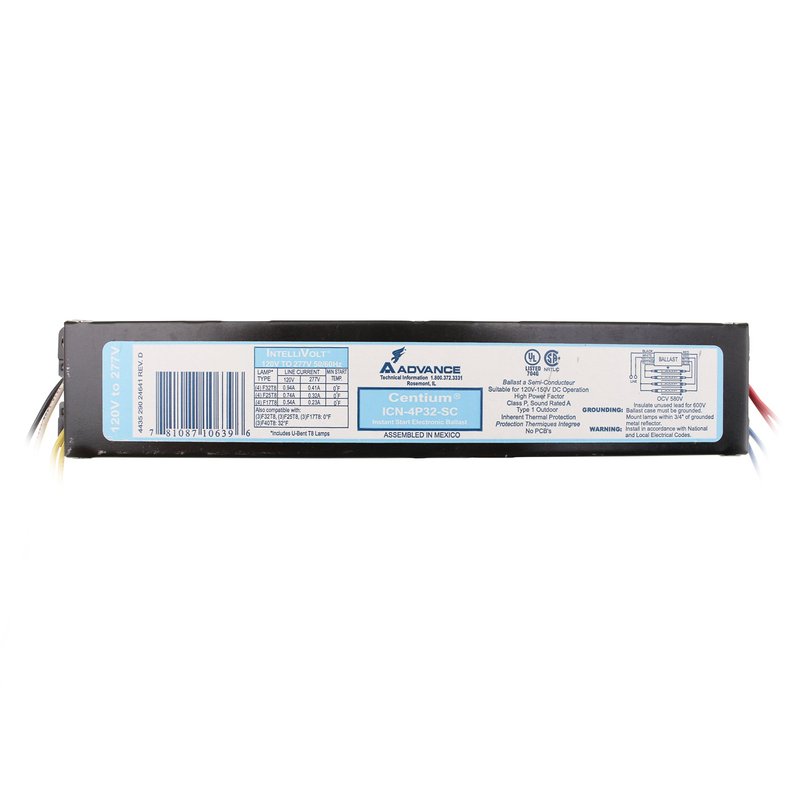 Advance ICN-4P32-SC Electronic Fluorescent Ballast, 4 Lamp, 32W T8, 120/277V