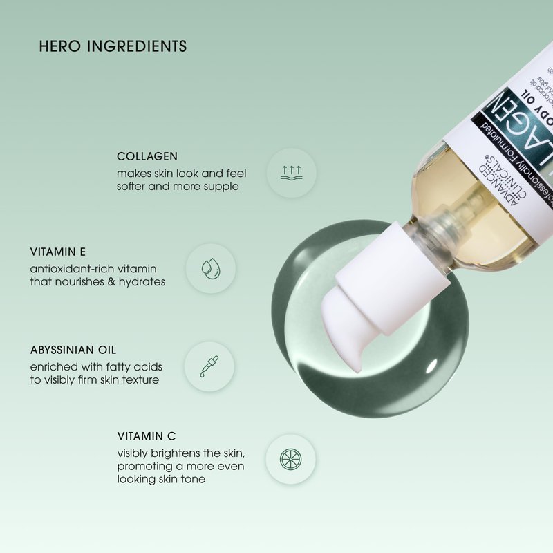 - NOURISHING + HYDRATING – With age our skin loses elasticity & moisture, our Clinically-Tested, Dermatologist-Tested, & Allergy-Tested hydrating Collagen Body Oil formula visibly smooths the look of skin's rough texture, plumps overall skin tone, & replenishes essential moisture to visibly restore volume to areas prone to sagging, dark spots, & wrinkles. Nourish, hydrate, & plump your skin for a healthier, fuller, & younger appearance while also improving your skins elasticity all at once.