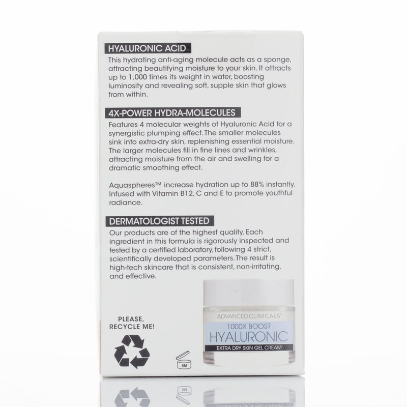 - DRYNESS, DEFIED – Hydrate your way to soft, healthy skin with Advanced Clinicals’ hyaluronic acid face gel cream! A lightweight yet concentrated complex restores essential moisture for dewy radiance!