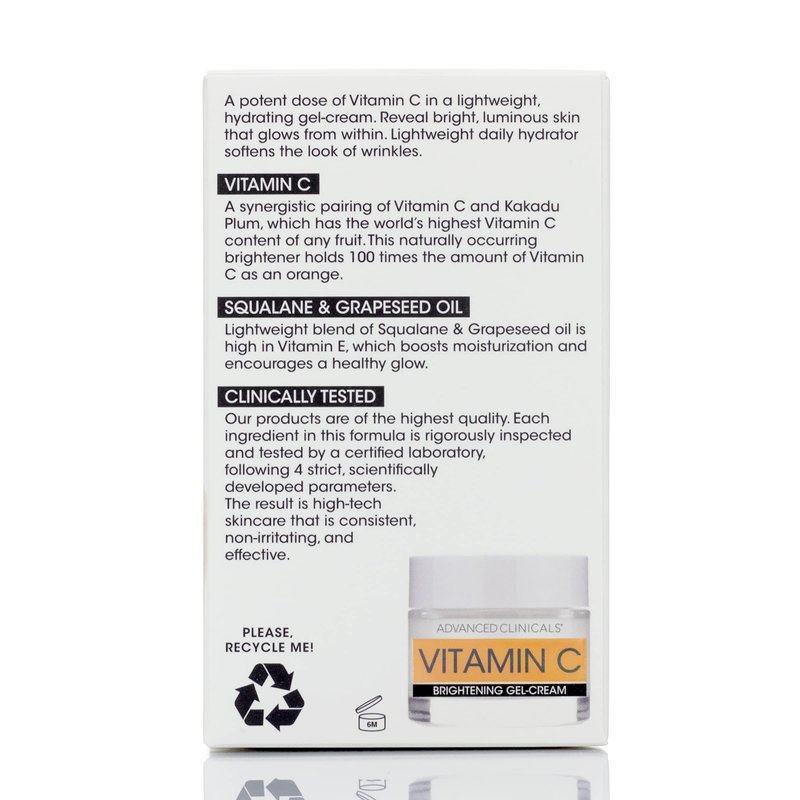 This Advanced Clinicals Vitamin C facial moisturizer cream gives you a healthy and radiant complexion by improving your skin texture and skin tone. Our ingredients provide additional skin hydration and soothing benefits. Clinically proven to increase skin luminosity, Advanced Clinicals Vitamin C face moisturizer brightens your complexion, visibly relieving darkening & sun damage. Your face glows with youth. Using a Vitamin C cream in your skin care routine is an excellent choice to experience the vision of younger-looking skin. It reduces the visible signs of ageing, giving you a smoother, brighter, & natural gleam. Our Vitamin C face lotion provides a protective moisture barrier while quenching thirsty skin, so you can say Goodbye to visible fine lines & wrinkles. Nature provides the ingredients, while science enhances & confirms the potency of each cosmeceutical formula that Advanced Clinicals produces, giving you the most effective & safe, clean beauty products available. Thanks to our natural botanicals, pure vitamins, potent proprietary formulas & premium grade products, your skin benefits without taking the harsh hit & irritation that come with many cosmetic products. The botanical sources in our formulas are carefully selected from highly-valued suppliers. Then, they're combined in our USA production facilities, meeting unwavering quality & safety standards.
