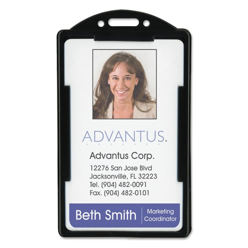 ADVANTUS ID Card Holder, Vertical, Holds up to 2-1/8" x 3-3/8" Card, 25 per Pack, Black (75657)