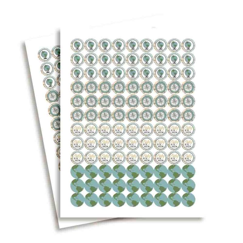 Adventure Awaits World Traveler Gender Neutral Baby Shower Kiss Sticker Labels, 300 Party Circle Sticker sized 0.75” for Chocolate Kisses, Great for Party Favors, Envelope Seals & Goodie Bags