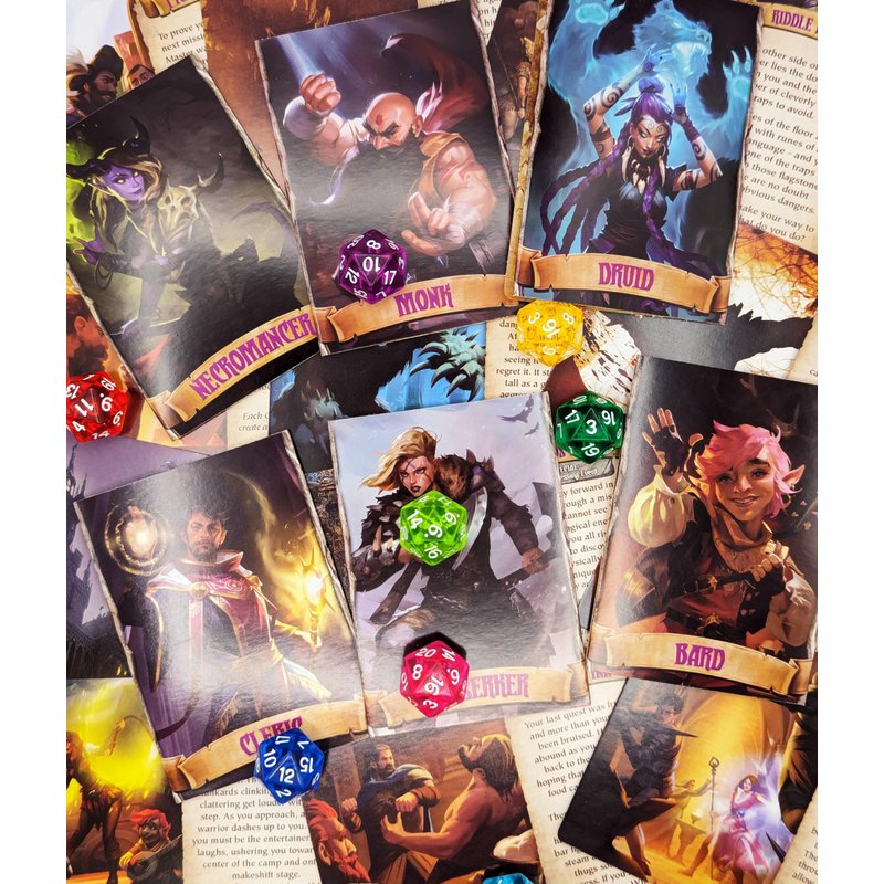 - Cooperative Guessing Gameplay: Work together with your fellow adventurers to score the most Experience Points possible! Roll your 20-sided die in secret, describe your actions, and challenge the GM to guess your roll for collective success.