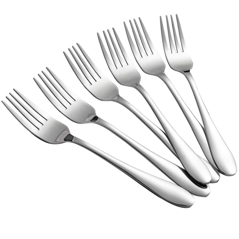 12-pieces salad forks,suitable for kids use.Great for appetizer, salad, dessert, fruit, cake, etc.