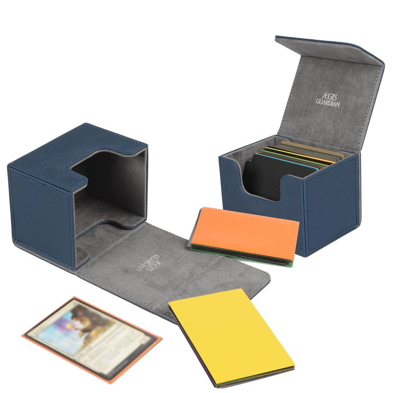AEGIS GUARDIAN Card Deck Box for MTG, Commander Deck Box Hold 120+ Sleeved Cards, Leather Strong Magnet Card Deck Case Holder for Magic Cards TCG CCG, Blue