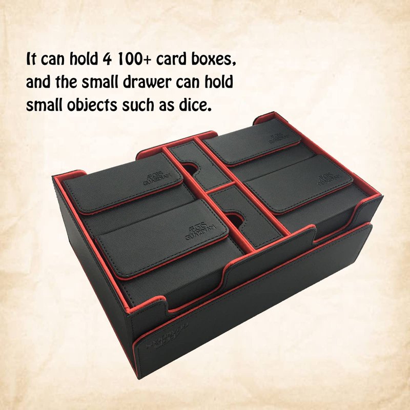 AEGIS GUARDIAN Commander Deck Box Hold 600+ Sleeved Cards, Card Deck Box with 2 Dice Tray Fit for TCG MTG CCG, Holds up to 4 Card Storage Boxes, PU Leather Strong Magnet, Black and Red