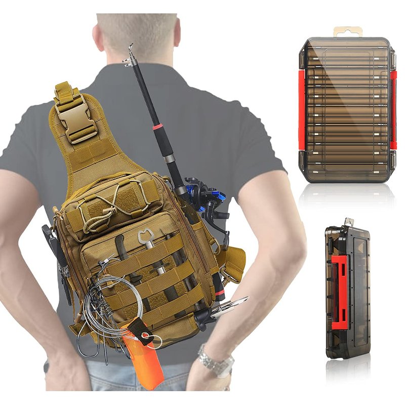 - Multi-Purpose: This men's fishing tackle bag is versatile with a changeable strap, allowing use as a chest tackle backpack or backpack tackle box with a rod holder. tackle box bag not just for fishing—ideal for travel and various outings