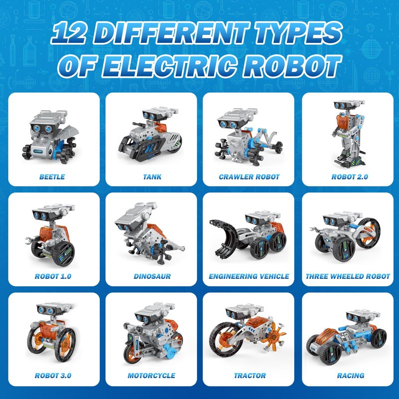 - Easy to Assemble: This educational building toy include a clear instruction manual that guides how to assemble, it is easy for 8+ years old boys and girls to build various robots by following the instructions step by step. Parents can accompany children as they assemble and experience the fun of building.