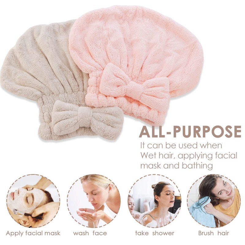 2 Pack Microfiber Hair Drying Caps Hair Drying Towel Super Absorbent Hair Towel Wrap