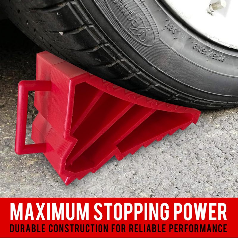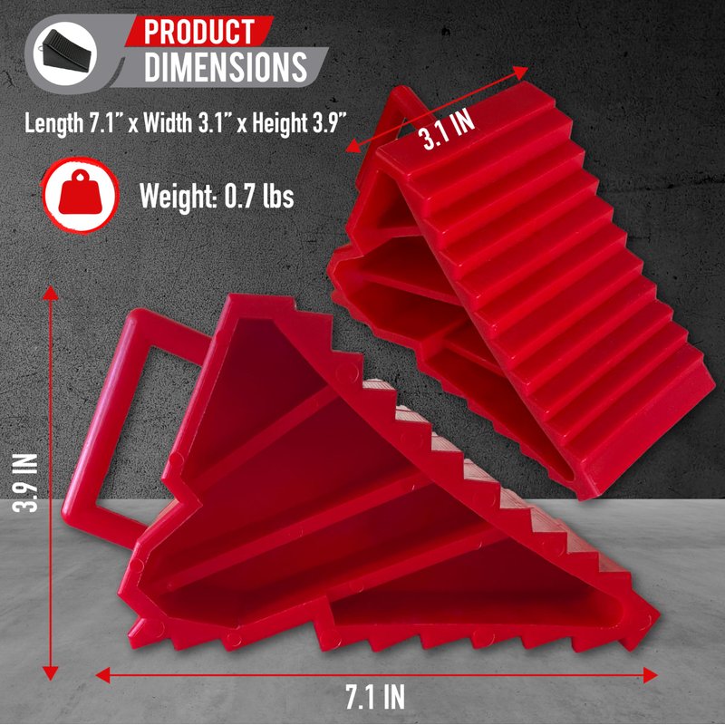 - ALL-WEATHER WHEEL CHOCKS: Unlike cheap plastic or rubber wheel chocks that shatter, slip, rip, or crack, these wheel chocks are reinforced and strong, giving you lightweight chocks that stand up to dirt, dust, salt, ice, mud, sun, sand, and heat.