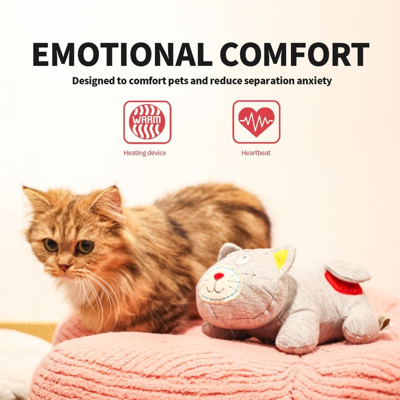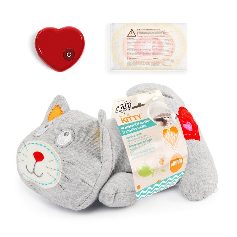 AFP Heartbeat Cat Calming Toy Heartbeat Kitty Toys Stuffed Plush Warm Toys for Cats Comfort Kitty Stress Relief and Sleep Aid Toy