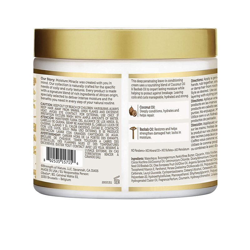 African Pride Moisture Miracle Coconut Oil & Baobab Oil Leave-In Cream - Provides Intense Moisture & Helps Repair Natural Coils & Curls, Hydrates & Strengthens Hair, 15 oz