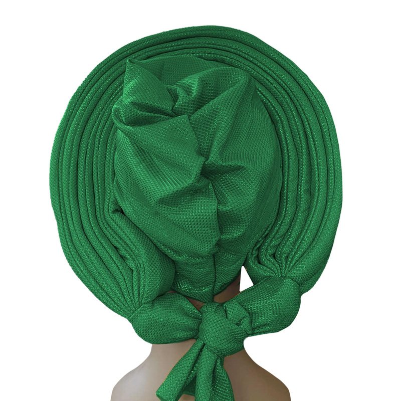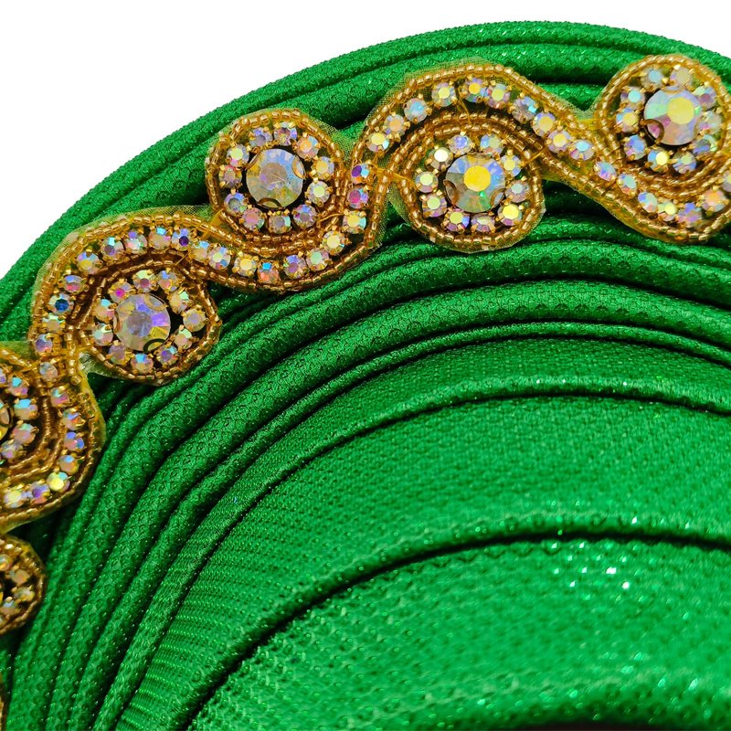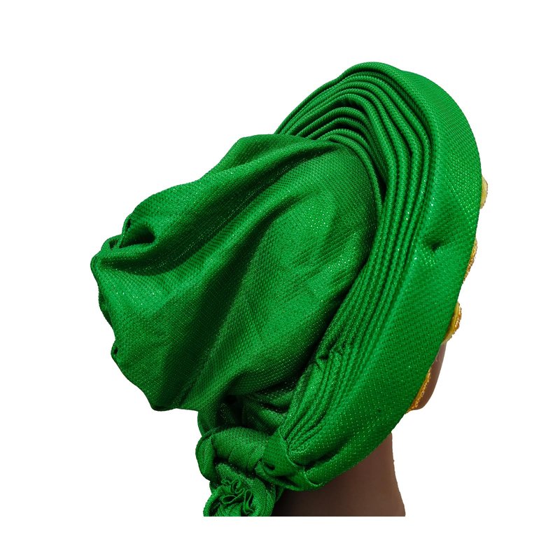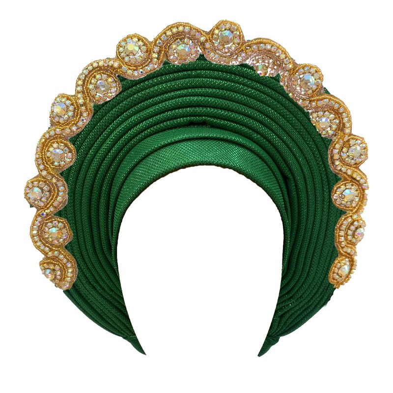 African Women's Turban Hat Stylish Gele Gemstone Headpiece, perfect for wedding parties. Auto Gele HeadtiesNigerian toe cap (Polyester, green)