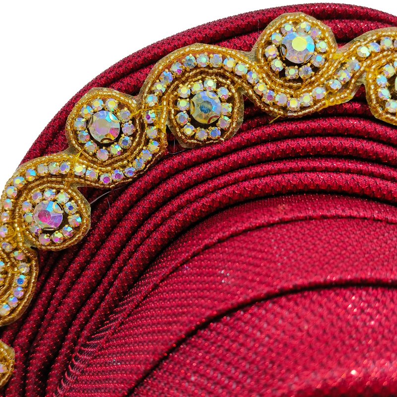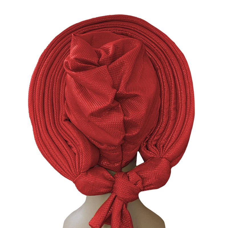 African Women's Turban Hat Stylish Gele Gemstone Headpiece, Perfect for Wedding Parties. Auto Gele HeadtiesNigerian Toe Cap (Polyester, red)