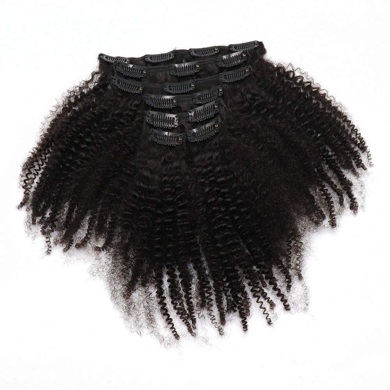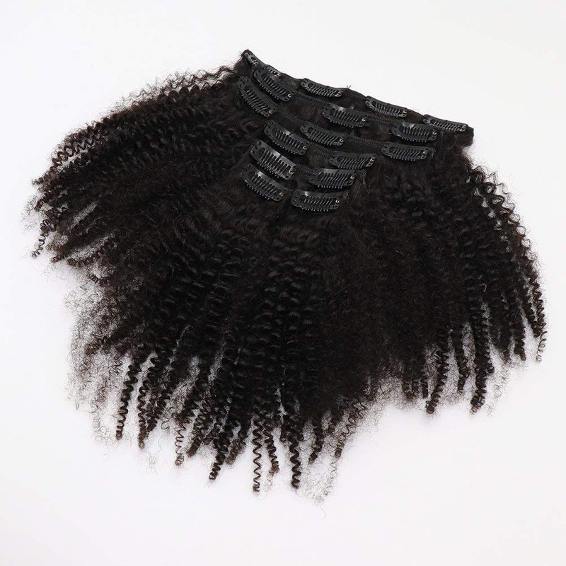 Afro Kinky Curly Human Hair Clip in Extensions Virgin Mongolian Human Hair Clip in Hair Extensions for Black Women Natural Color 12'' 7pcs/set 120gram/set