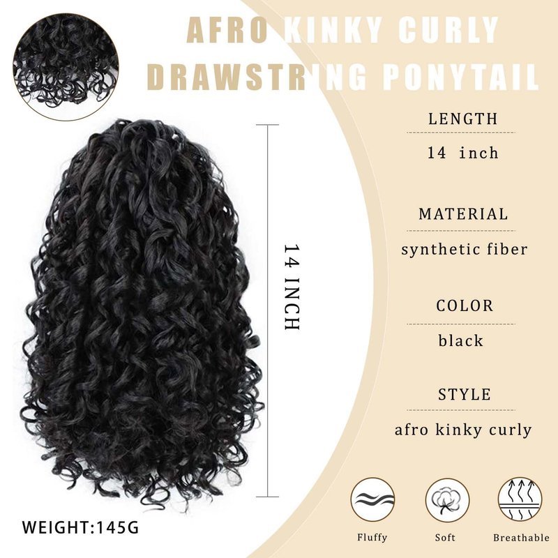 - 【Unique design】Short Afro Kinky Curly Ponytail Hair Piece is more voluminous with a beautiful natural tail.It's easy to create a quick, tight bun and pop on your ponytail. You can wear this Afro Kinky Curly Ponytail in various positions, such as high or low ponytails.