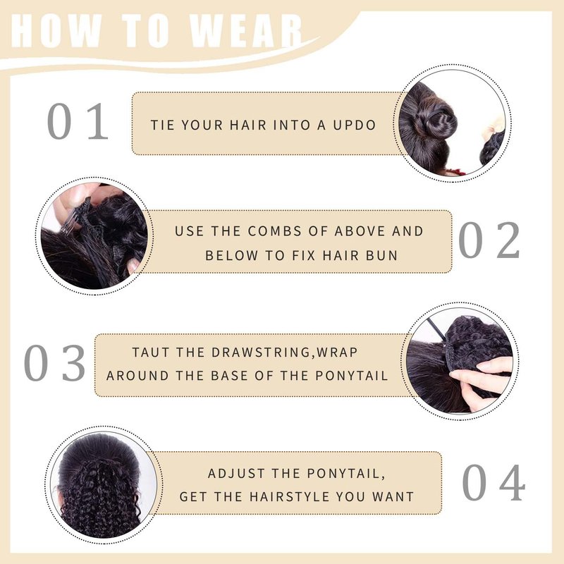 - 【Easy to Wear】The Drawstring Ponytail is Easy and Quick to Apply,it can blend well with your own hair, give you a natural-looking.You can also trim it to blend in with your own haircut.Just put your own hair into a ponytail,open the drawstring,clip it into place,and tighten the drawstring to secure it.