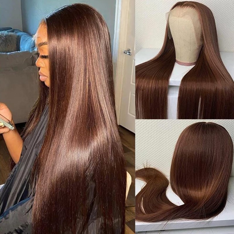 - 13x4 Brown Straight Lace Front Wigs Advantage: 100% Unprocessed 10A Human Hair, Without Animal Or Chemical Hair,10A Grade brazilian virgin human hair, soft and clean, vibrant and health. No shedding, no tangling, no smell and true to the length and density.