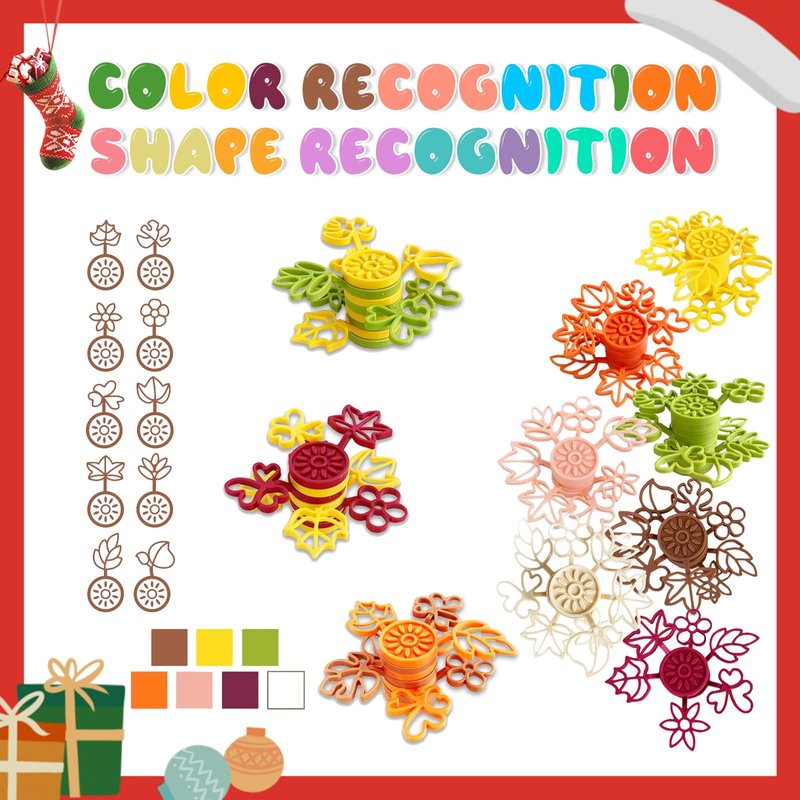 - Shape& Colors Recognition:Stacking toys for toddlers 3+ Each leaf has its own shape and color,and children can piece the leaves together to form different forms,such as numbers,and patterns.There is also grouping leaves of the same color together.This will be fun for children and will help develop their creativity and sensory skills!
