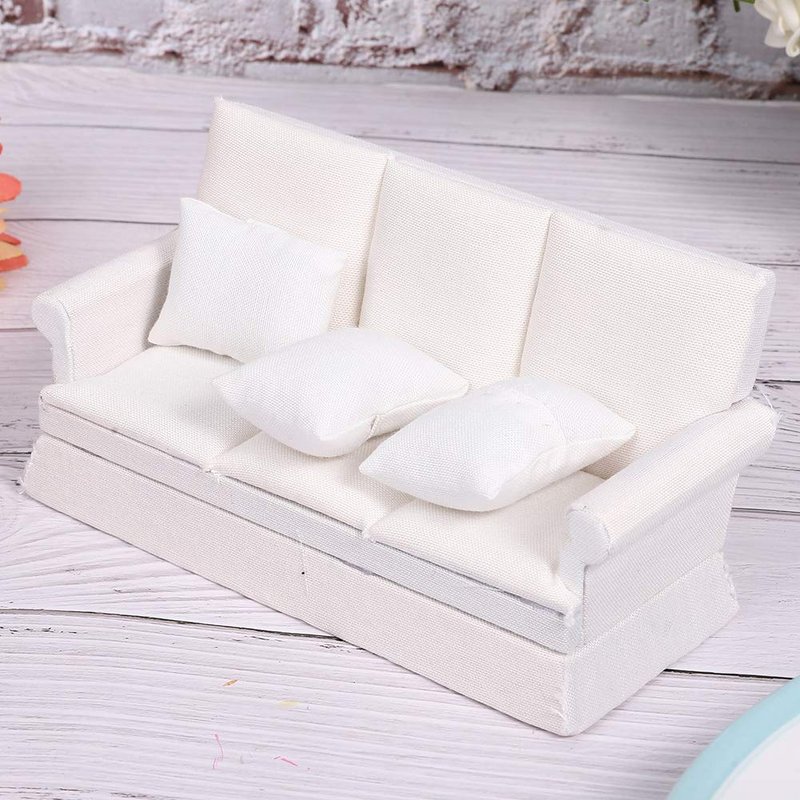 Agatige Dollhouse Furniture Set, Dollhouse Miniature Sofa Kit with 3 Pillow Miniature Toys Couch Chairs for 1:12 Dollhouse Accessory(White)