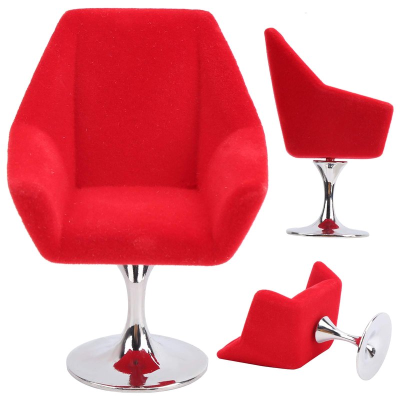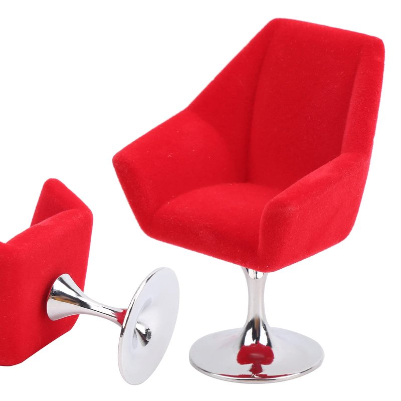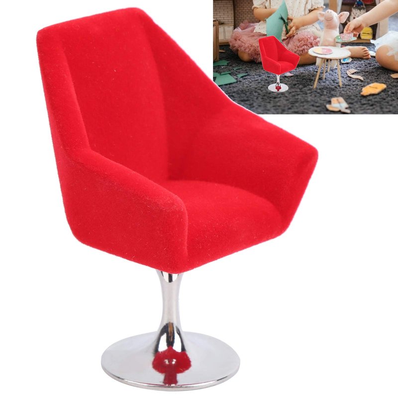 Agatige Miniature Chair, Rotate Flocking Chair Dollhouse Furniture for 1:12 Miniature Doll House Accessories(Red)