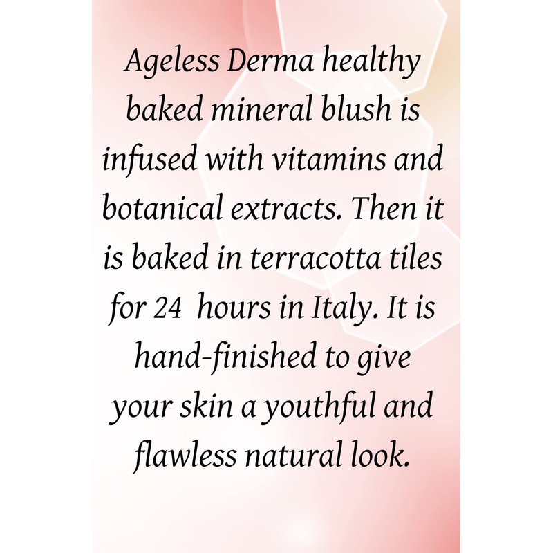 - Ageless derma healthy blush is Baked for 24 hours in Terracotta tiles in Italy; then hand-finished for no fuss and easy application, blending perfectly with your skin tone. It doesn't set on your fine lines and wrinkles—a perfect choice for aging and mature skin. It makes the skin looks healthy and feel healthy to maintain its natural radiance