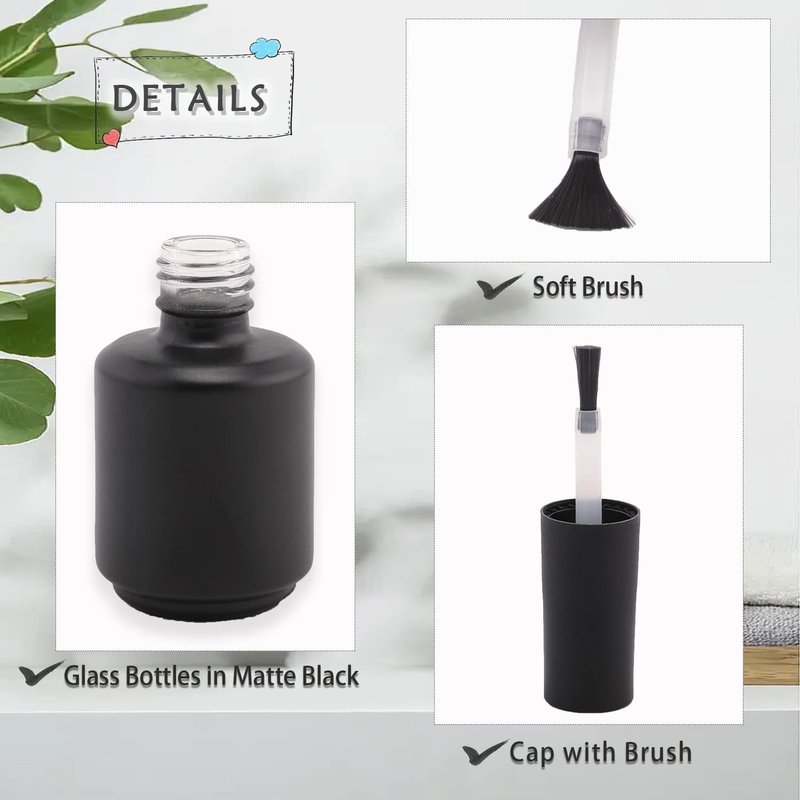 - ❀[Leak Proof]:The empty nail polish bottle is leak-proof. It's tight and prevent accidental leaking if the brush cap is screwed on correctly.