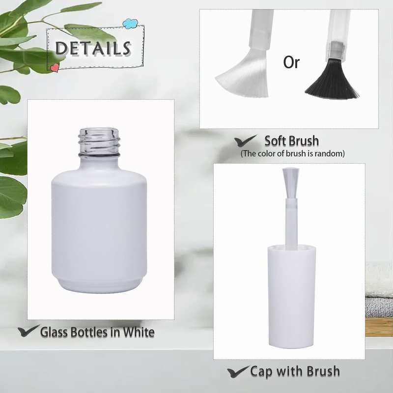 - ❀[Package Content]: 6 x 15ML Empty Nail Polish Glass Bottles with Brush(Randomly shipped with black or white brushes), 6 x Mixing Balls, 1 x Funnel