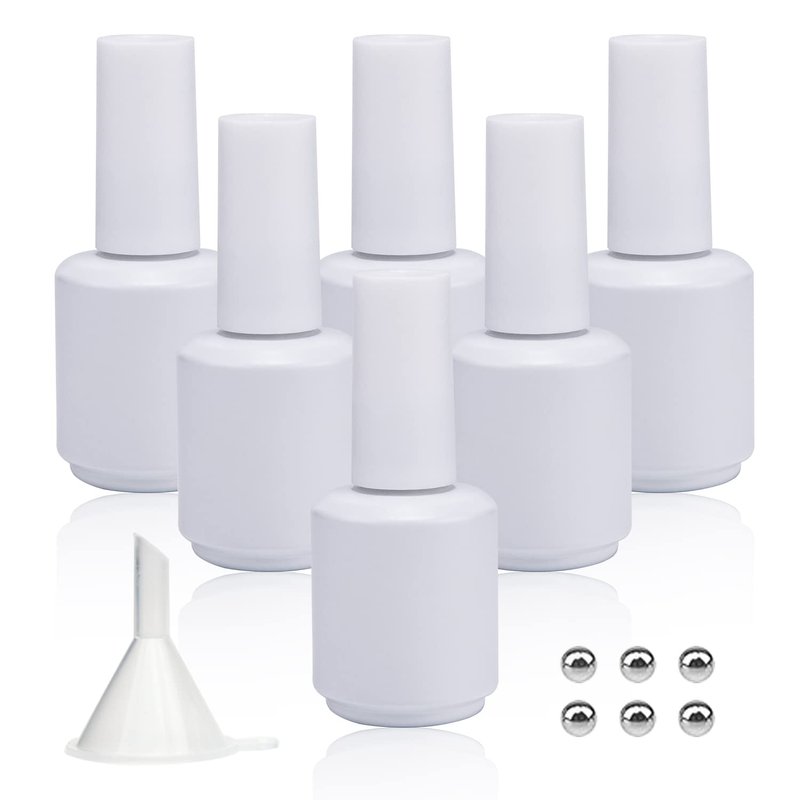 Agidea Empty Gel Nail Polish Bottles, Empty Nail Polish Bottles 15ML, Opaque Round Glass Refillable Fingernail Polish Bottles UV Safe with Mixing Balls & Funnels, Pack of 6 (Matte White)