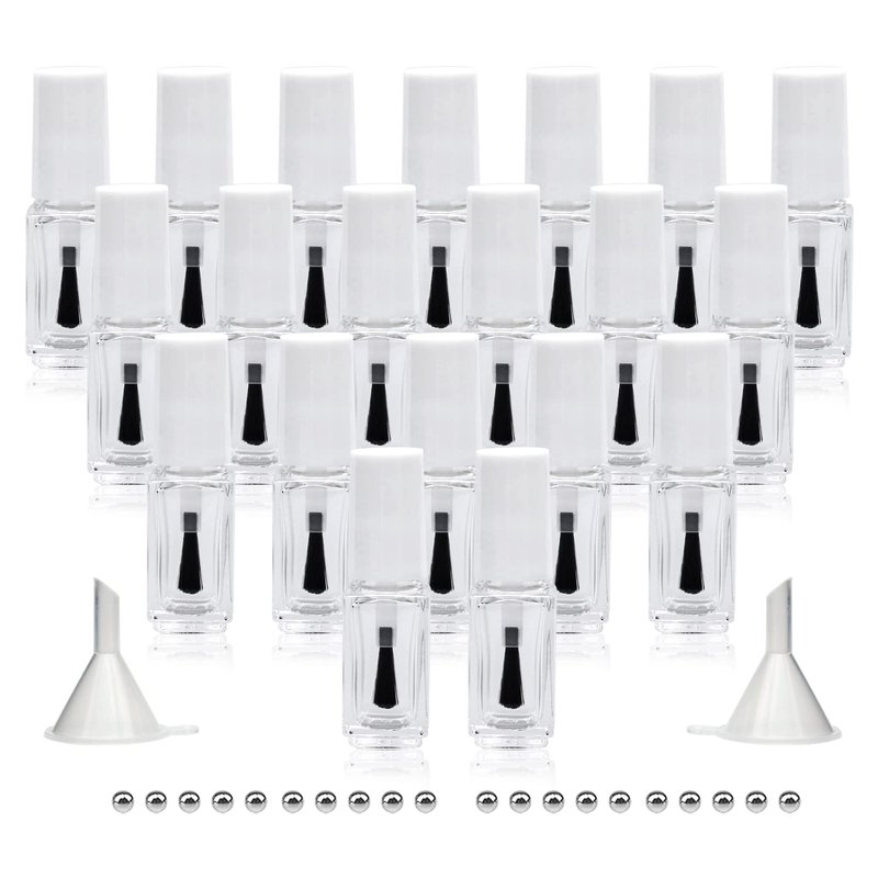 - ❀[Package Content]: 20 x 5ML Empty Nail Polish Glass Bottles with Brush, 20 x Mixing Balls, 2 x Funnel
