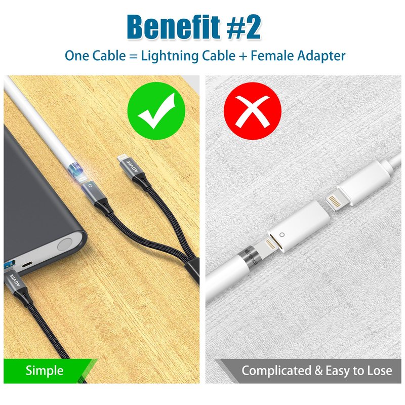 AGVEE 5ft USB-C Male to Lightning Female Charging Adapter Cable for Apple Pencil 1st Generation, 2 in 1 Charger Cord Enables Apple Pencil Pen 1st Gen Match iPad 10, Dark Gray