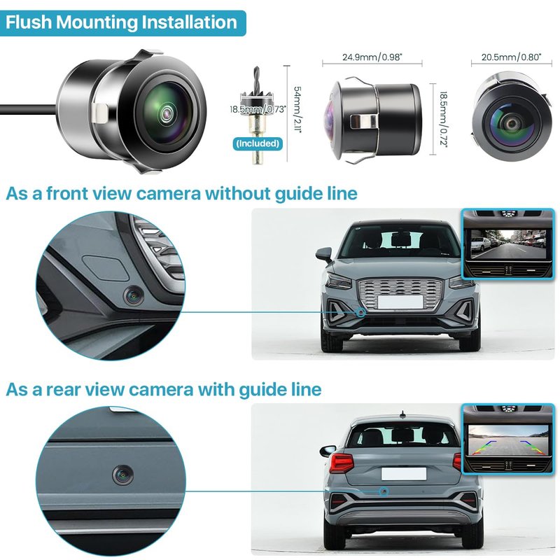 - HD Back up Camera with Two Brackets: This camera offers two installation options - bracket mounting or flush mounting - allowing you to choose the method that best suits your specific needs. Please note that this is a single camera with two installation methods, not two separate cameras.