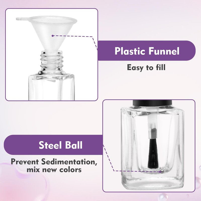 - 【Easy To Fill】Plastic funnel can quickly transfer and fill your small nail polish bottle, steel mixing ball helps mix to get a good color effect.
