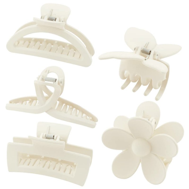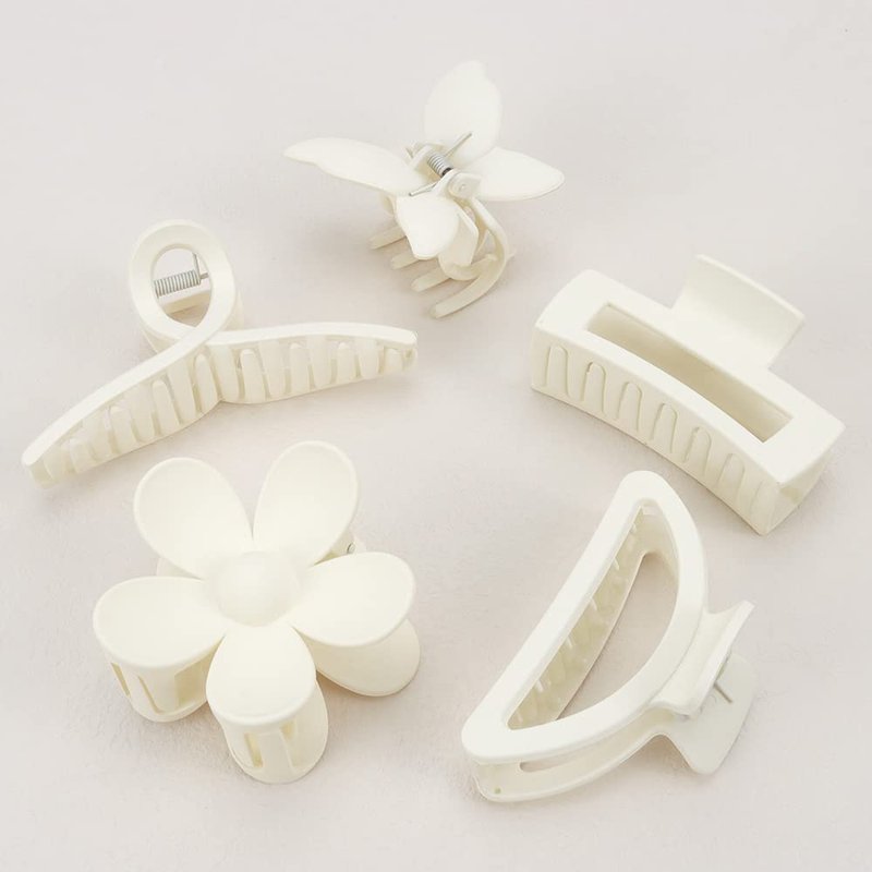 - 【Multi-Hair Clips Set】A package contains 5 different styles and sizes with White claw clips, including Large Cross/Medium Rectangle/Medium Meniscus/Medium Flower/Small Butterfly. Multiple choice to hold all type of hairstyles, thin/medium/thick hair. One set meet all popular hair clips styles needs.