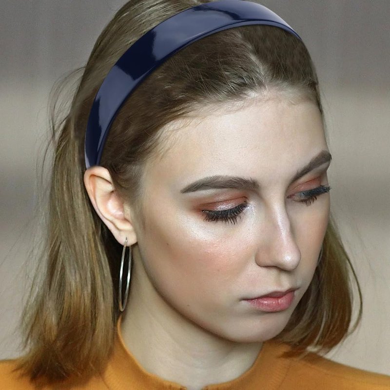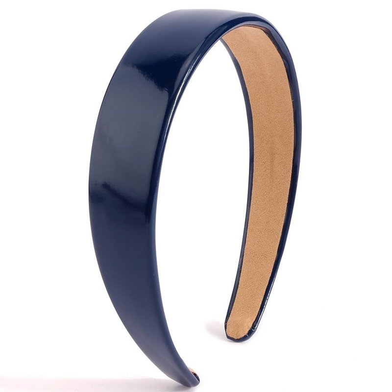 AHONEY Navy Blue Headband for Women Girls Glossy Vegan Leather Headband Non Slip 1.18" Wide Plain Head Band Solid Hair Band DIY Halloween Holiday Hair Accessories Gifts