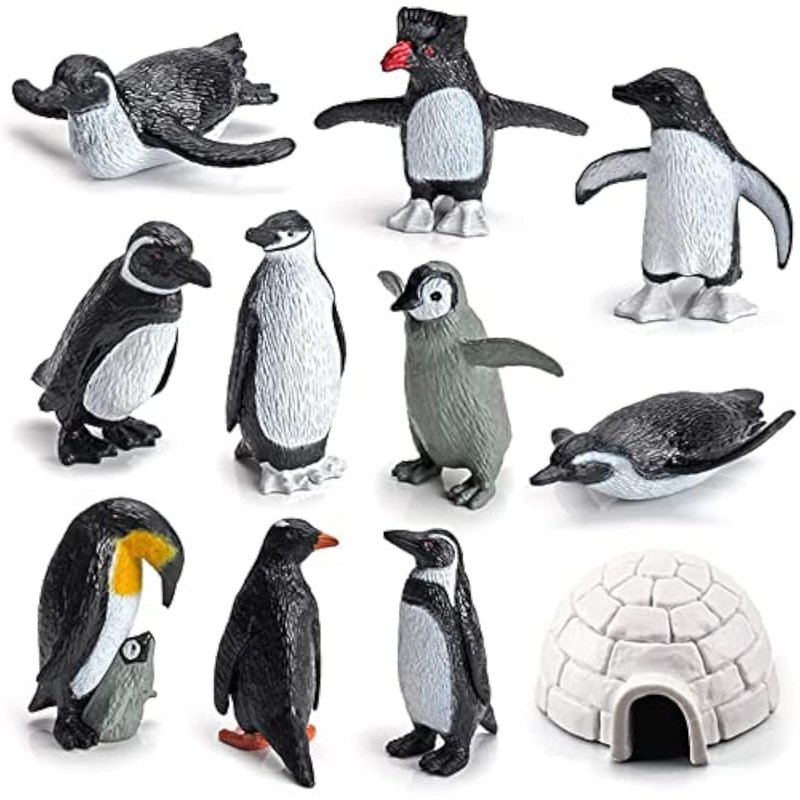 - This Penguin Igloo Figurine Toys contains 10pcs Penguins and 1pcs Igloo. Each animals dimention is tiny, about 1 to 1.9inch.
