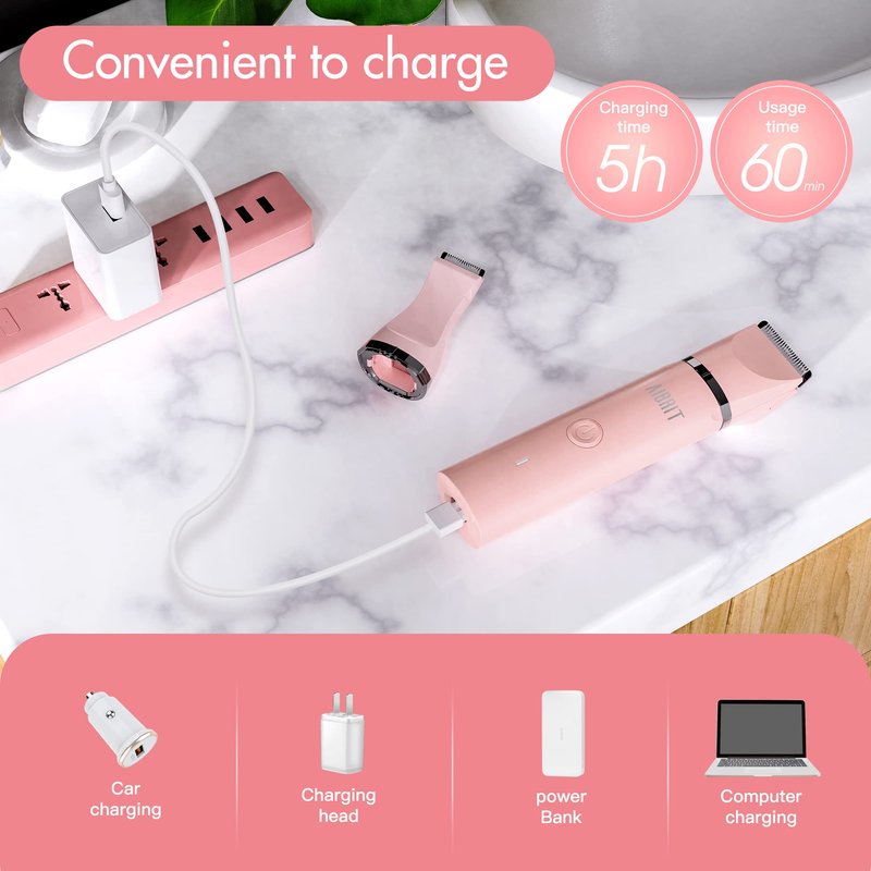 - 【USB Rechargeable & Power】 Electric bikini trimmer can be fully charged in just 5 hours with USB convenience charging, available for up to 60 minutes cordless use under the highest speed mode. Lightweight and portable. Convenient for travel.
