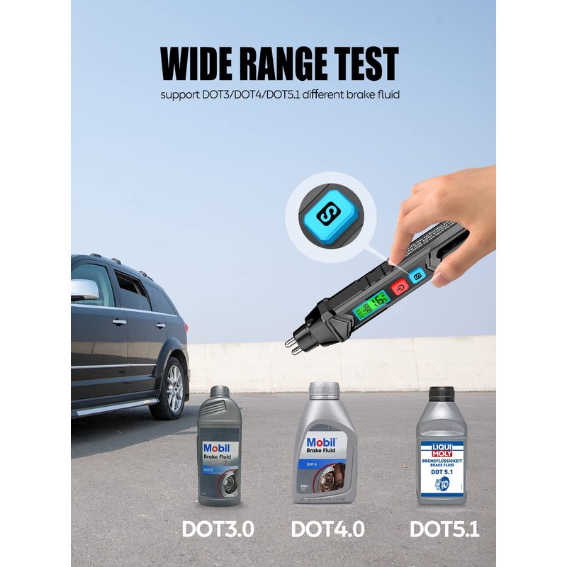 - WIDE RANGE OF APPLICATIONS: The automotive brake fluid tester is a universal device for most vehicles. It can check the condition of DOT-3, DOT-4, DOT-5.1 brake fluids as well as most synthetic brake fluids. It is extremely easy for personal use and is widely used for private workshops, repair shops and car dealerships.
