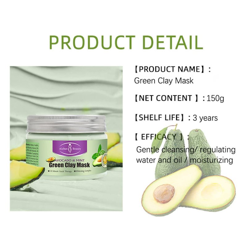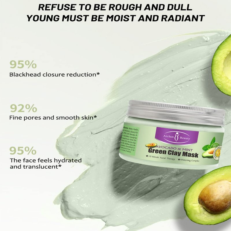AICHUN BEAUTY Clay Face Mask Deep Cleansing Exfoliation Soothing Repair Remove Blackheads Facial Moisturizing Anti-Acne (AVOCADO & MINT (GREEN))