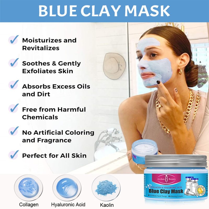 AICHUN BEAUTY Clay Face Mask Deep Cleansing Exfoliation Soothing Repair Remove Blackheads Facial Moisturizing Anti-Acne (COLLAGEN & HYALURONIC ACID (BLUE))