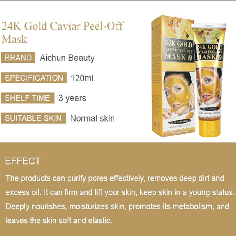 AICHUN BEAUTY Peel-Off Facial Mask Deep Cleansing Oil & Dirt Pores Face Skin Recover Vitamin A & E 120ml/4.05fl.oz (24K GOLD CAVIAR PEEL-OFF MASK)