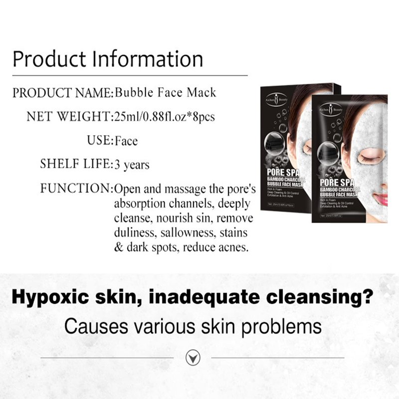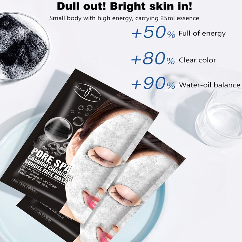 AICHUN BEAUTY Pore Spa Bamboo Charcoal Bubble Face Mask Deep Cleaning Foam Oil Control Exfoliation Anti Acne Facial Skincare 25ml / 0.88fl.oz (8 PACK)