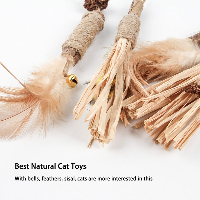 - Silvervine Feather Cat Wand Refills : Our cat wand replacements are made from natural silvervine, raffia, sisal rope and gall fruit.The gall fruit on the cat chew stick has a stronger taste and is more attractive to cats.While interacting with the cat, the cat can chew on toys. The natural sisal rope and raffia are bite resistant and help cats clean teeth.There are absolutely safe for cats to chew and bite.