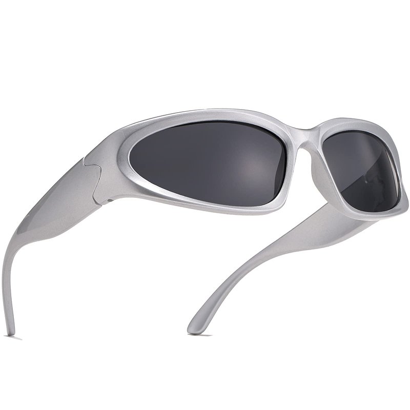AIEYEZO Wrap Around Sports Sunglasses for Men Women Fashion Oval Thick Frame Sun Glasses Stylish Sport Wrap Shades (Silver/Grey)