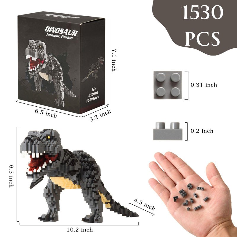 - ✅✅✅The Tyrannosaurus Rex mini-block group consists of 1530pcs mini-blocks, including detailed step-by-step color instructions, and exquisite details of various sizes and color components.
